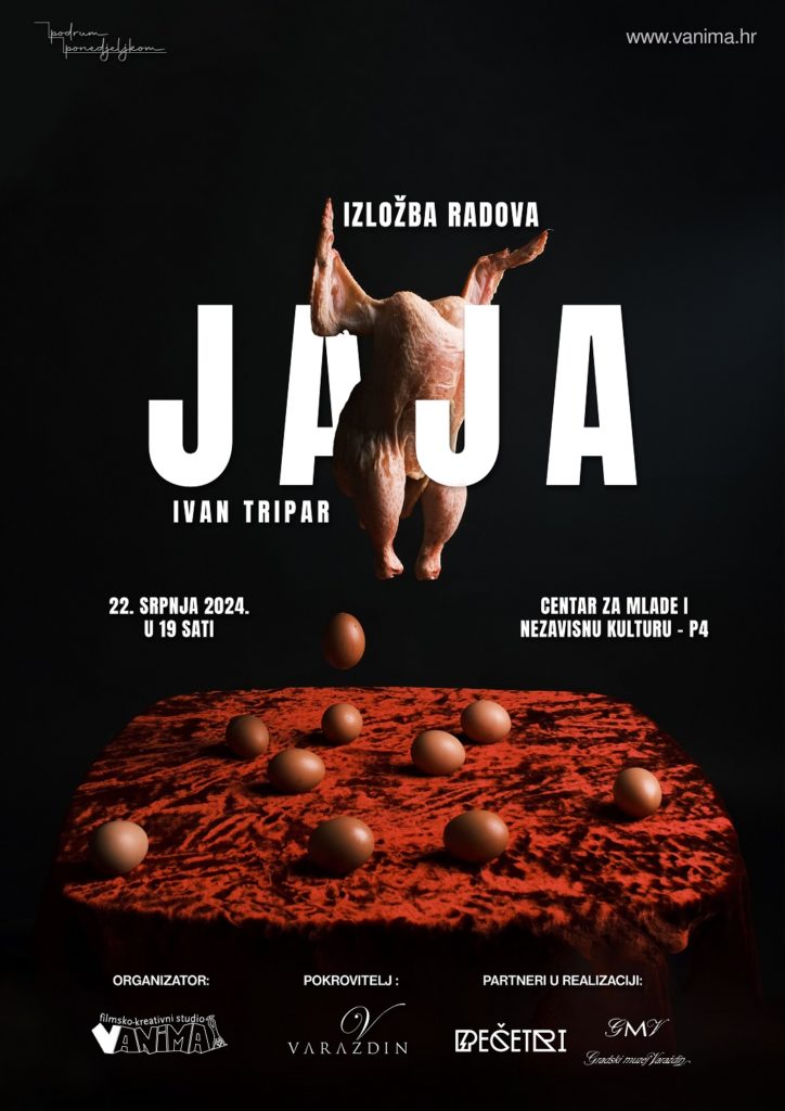 Među događanjima koja će obilježiti ne samo petu sezonu Vaniminog programa „Podrum ponedjeljkom“ već i izložbenu sezonu u Varaždinu općenito, svakako se izdvaja izložba fotografija snimatelja i fotografa Ivana Tripara, studenta ADU u Zagrebu. U podrumskom prostoru CZM P4 u Preradovićevoj ulici u Varaždinu Tripar izlaže 24 (dva tuceta) fotografija iz svog ciklusa pod nazivom „Jaje“. Sjajne i besprijekorne, kompozicijski zanimljive i atraktivne, ove fotografije tematiziraju jaje i simbole koje uz jaja vežemo, a autor nas sigurnom rukom snimatelja i čudesnom snagom svog talenta uvodi u fantastični svijet vlastitih snova. On to radi nepretenciozno i ne razmećući se, jer intuitivno zna da će promatrač njegovih fotografija razumjeti jezik kojim mu se obraća. Taj je vizualni jezik neobično bogat i raznovrstan. Povremeno duhoviti i komični, a povremeno jezoviti, prizori iz Triparovog sna o jajima obiluju filmskim, slikarskim, književnim i stripovskim acocijacijama. Ova izložba vjerojatno ne bi bila draga Alfredu Hitchcocku koji je patio od ovofobije i jaja su ga užasavala ili Werneru Herzogu koji s gnušanjem ističe enormnu glupost kokoši, ali sigurno bi ju voljeli John Waters ili recimo Zvonimir Majcug. Od umjetničkih preko prehrambenih i nadrealnih prikaza jaja, do kuhanog jajeta što izlazi iz zaklane i očišćene kokoši, ili prizora koji sjećaju na jaje-torzo Boschovog demona iz srca pakla, Tripar nas dovodi i do autoportreta na kojem se dočarao poput blizanca jajeta harambaše iz poznate narodne pripovijetke. I na kraju o snovima. Kad je o jajima riječ, većina se sanjarica slaže da u snu ona uglavnom predstavljaju dobar znak i najavljuju pozitivna zbivanja koja predstoje. Izložba „Jaja“ Ivana Tripara u Centru P4 u Varaždinu nedvojbeno je jedan od takvih znakova.